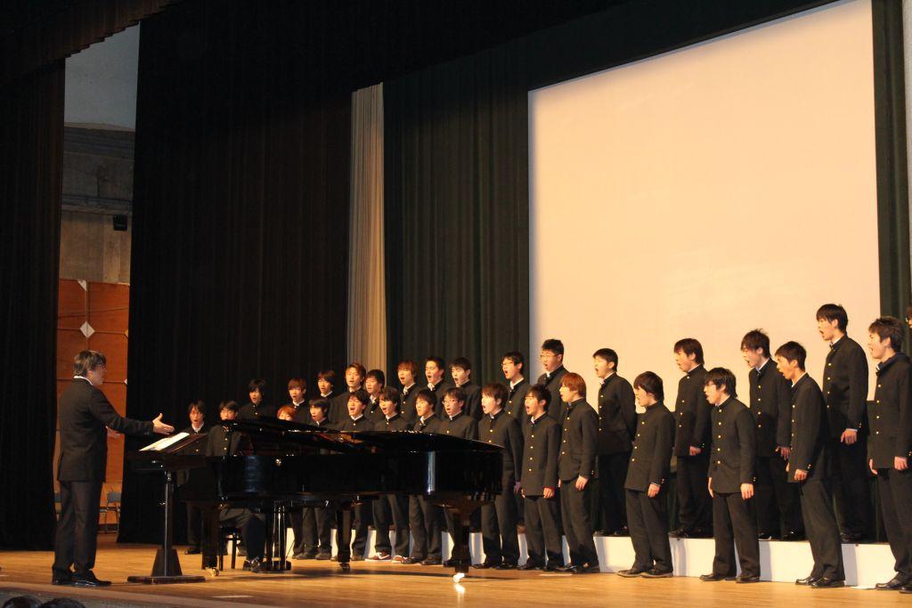 演説終了後、冬の演説会の恒例となった3年自由選択科目「芸術A」履修者による合唱の発表がありました。率直で、明るく温かみのある声に皆熱心に聞き入っていました。曲目は「Winding road」、「種子」、「問え、そして歩め」、「塾歌」。