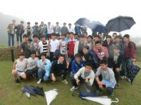 理科・社会コースのA・B組は、箱根方面に赴き実地踏査を行ないました。見学先は山伏峠・丹那断層・火雷神社・山中城跡で、新宿からバスで現地に向かいました。あいにく3日間のうち、唯一雨天の日となり、山伏峠では靄(もや)で視界が遮られたり、山中城跡ではぬかるみに足を取られながら歩いたりと、見学にやや制限もありました。それでも志木高に入学してはじめての「旅行」ということもあり、和気あいあいとした雰囲気の中で、親睦を深めることができました。