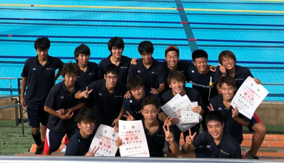 また、リレー競技では、400mリレー(1年橋本裕大(予選は足立)、木根、2年佐々木悠吾、奥山)は4位に入賞、400mメドレーリレー(足立、奥山、佐々木、木根(予選は橋本))と200mリレー(橋本(予選は2年神谷怜男)、木根、佐々木、奥山)は共に5位に入賞、総合得点で競う学校対抗では5位に入賞いたしました。リレー競技での4位入賞と学校総合での5位入賞は、本校水泳部において過去最高順位となります。