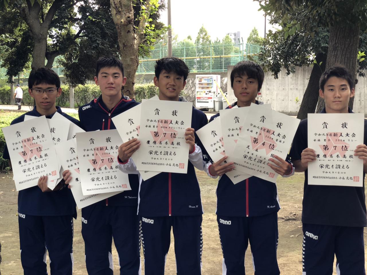 また、リレー競技では、400mリレー(橋本、1年徳永一賀、足立、丸橋)と400mメドレーリレー(足立、1年南祐翔、徳永、丸橋)と200mリレー(橋本、徳永、南、丸橋)の3種目においていずれも7位の成績を収め、総合得点で競う学校対抗では7位に入賞いたしました。