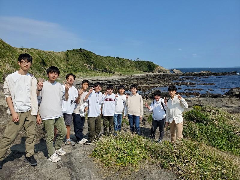 2日目は小網代の森、浄楽寺、城ケ島をそれぞれクラスごとに時間をずらして見学しました。城ケ島では、教員によるガイドのもと、地層の堆積構造や断層を実際に見ながら学習しました。小網代の森では、NPO法人の方々による案内で森の生態系の変化を感じながら散策し、最後にたどり着いた干潟ではチゴガニのカニダンスを見ることができました。浄楽寺では、近代日本の郵便制度を創設した前島密についての話を伺い、鎌倉時代の仏師、運慶の手になる阿弥陀三尊像・不動明王立像・毘沙門天立像を間近で拝観しました。