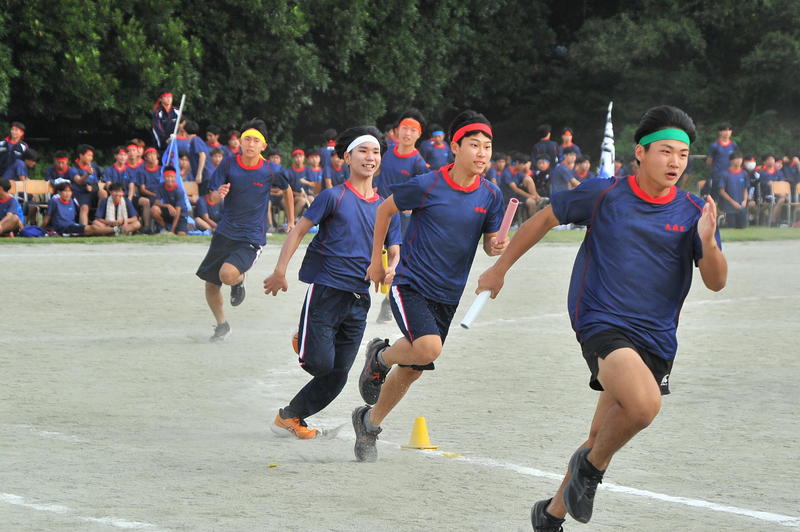 今年度は、新たな挑戦として「障害物リレー」と「200m×4クラス選抜リレー」を加えました。「障害物リレー」は、夏休みから実行委員が構想を重ね、数々の試行錯誤を経て形にした競技です。飴玉探しに苦戦する仲間を全員で声を合わせて応援する姿には強い絆が感じられ、印象深いものになりました。