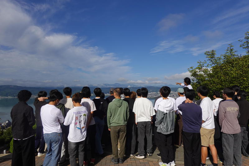 上越地域では、上越火力発電所、柏崎刈羽原子力発電所を見学したほか、諏訪地域への道中で水力発電を行う黒部ダムに立ち寄りました。日本の主要な発電方法の仕組みを学び、これからの日本におけるエネルギー産業の在り方について考察しました。さらに「大潟 水と森の公園」では砂丘湖の形成過程について、「糸魚川-静岡構造線」の周辺ではフォッサマグナの形成過程や地質構造が地形にいかに反映されるかという、地表情報の解釈についての経験を積みました。