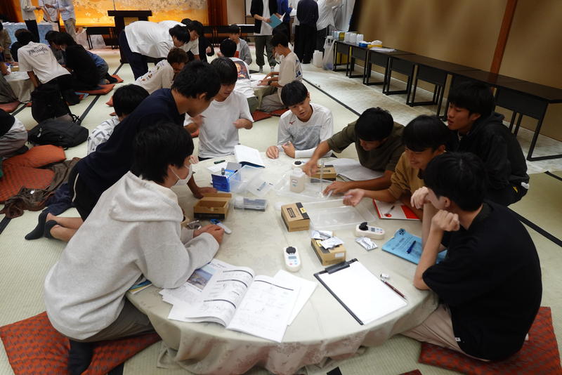 諏訪地域での研修では、諏訪湖だけでなく、大王わさび農場、木崎湖、中綱湖、青木湖の水について様々な測定を行い、周辺環境や地理的な要因を踏まえながらその水質について調査・考察しました。またクリーンレイク諏訪では施設見学とともに下水処理の仕組みについて説明を受け、水質が改善されていく様子や環境に配慮する取り組みについて学びました。