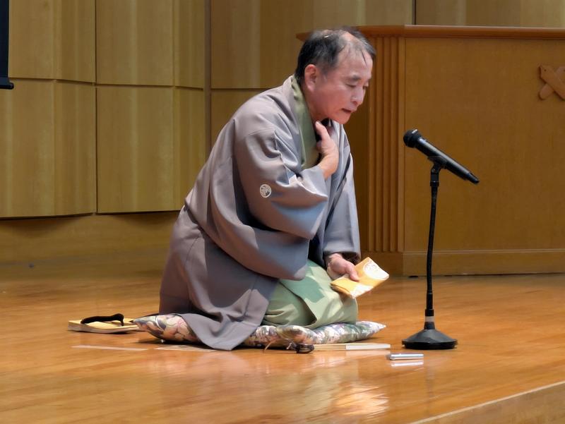 そして、人生でいかに「聞く」というコミュニケーションが大切であるか、そうした相手の立場から世界を観ることで自分自身に気付きをもたらすコツを、『一眼国』をはじめとする落語を例に、スタンダップコメディと対比しながら縦横無尽に示し、現在の芸の肥やしになった師匠との大切な経験の数々へと結びつけます。最後は談慶流にアレンジした『壺算』で締め括り、生徒たちは、「人間のダメさ加減」を肯定する落語の奥深さを間近で堪能することができました。質疑応答まで、笑いと涙と志木高愛に溢れていました。